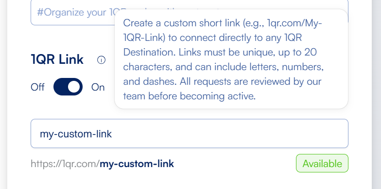 We’re excited to announce 1QR Links, the newest feature designed to make your QR codes and links even more powerful! With 1QR Links, Pro and Unlimited subscribers can now create branded, custom short links like 1qr.com/shop-brand-name or 1qr.com/my-product-launch. Whether you’re promoting a product, sharing a campaign, or driving traffic to a special event, your link will look professional, trustworthy, and unmistakably yours.